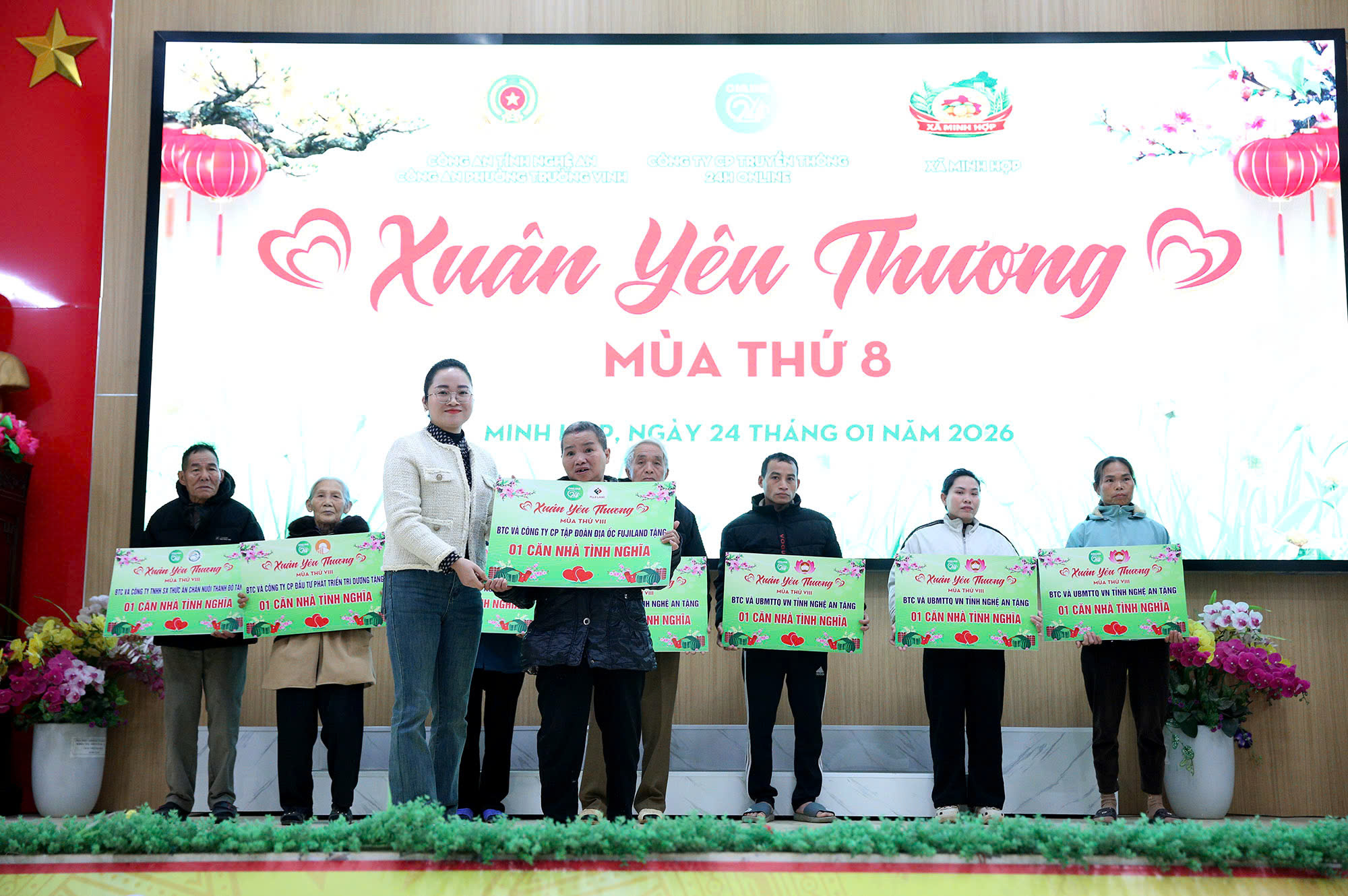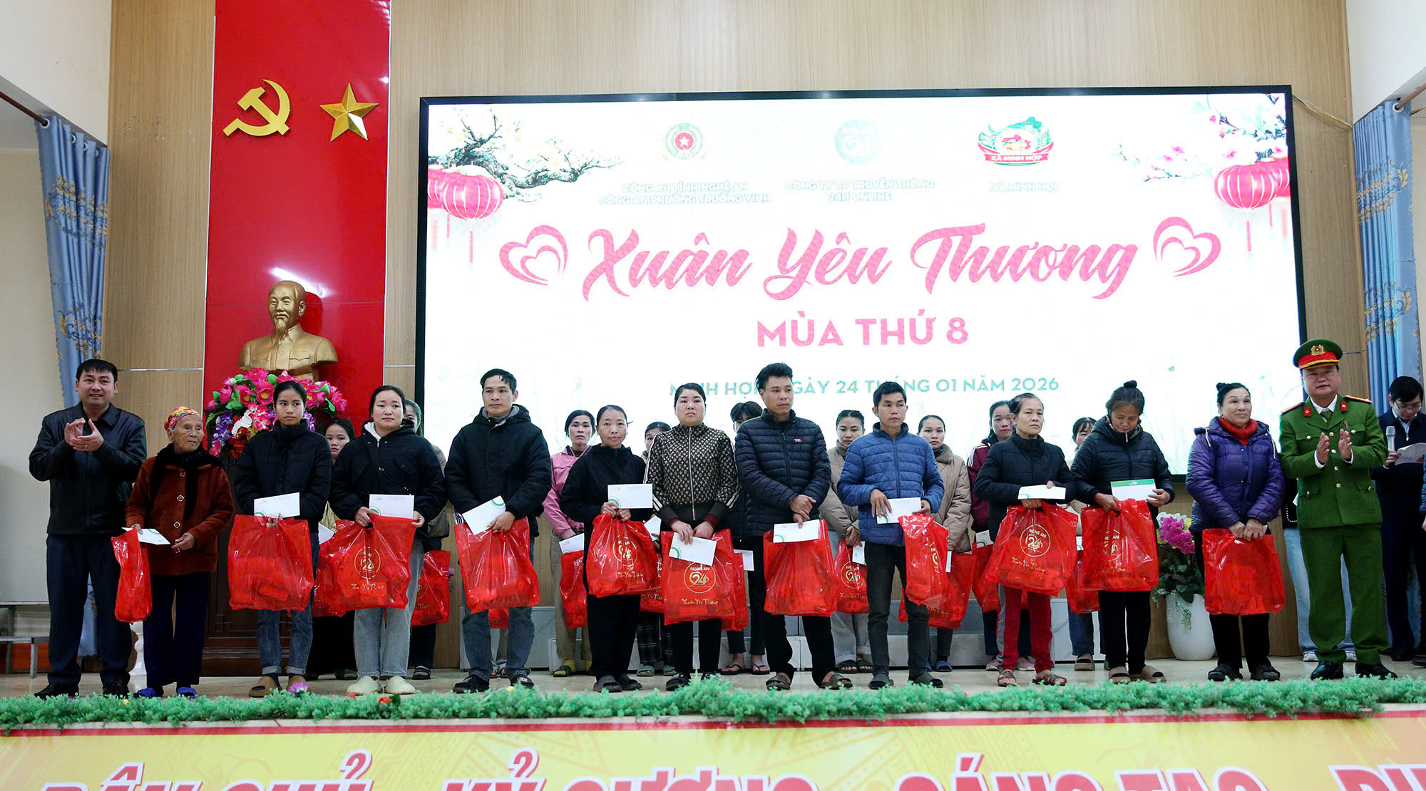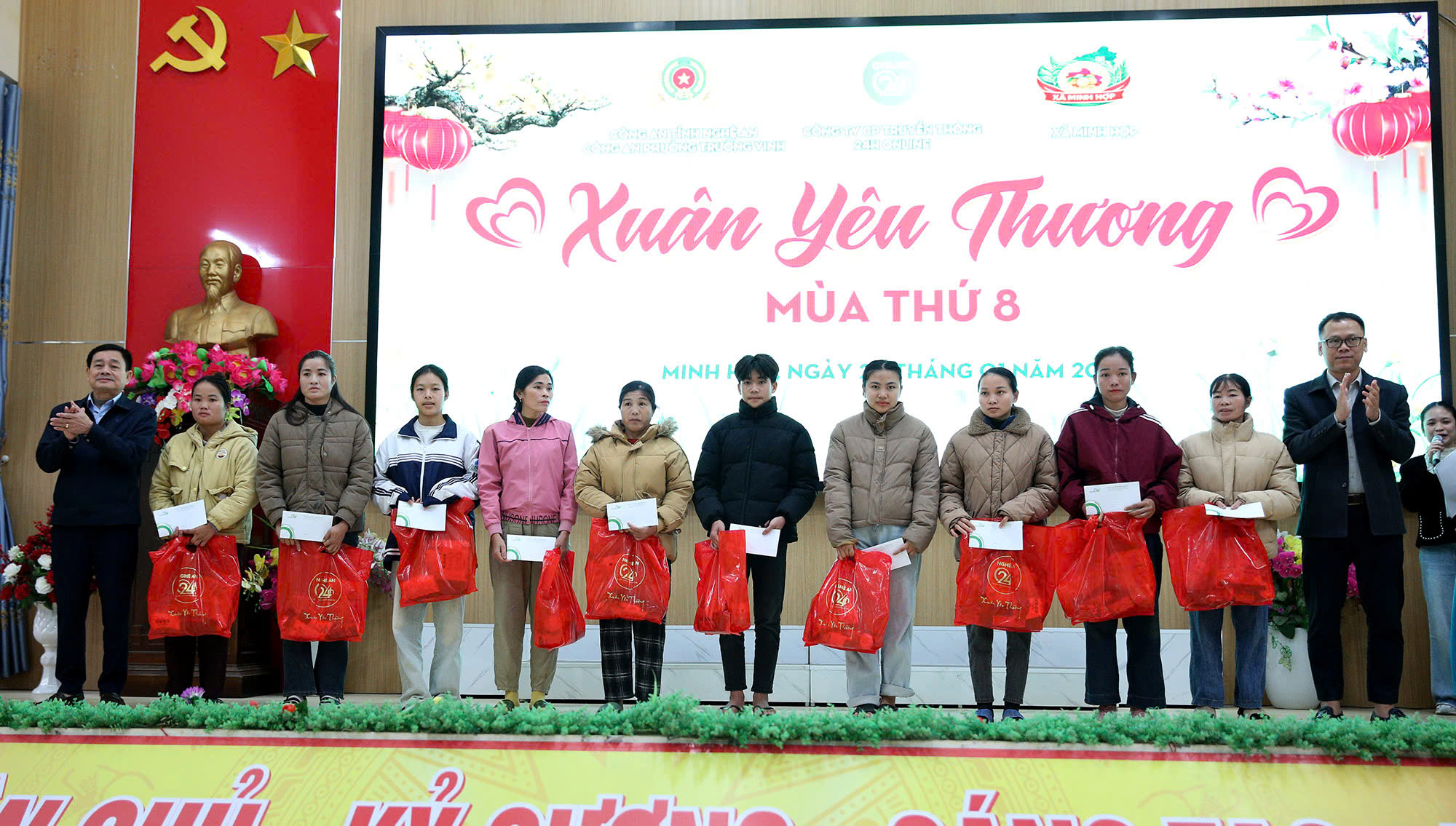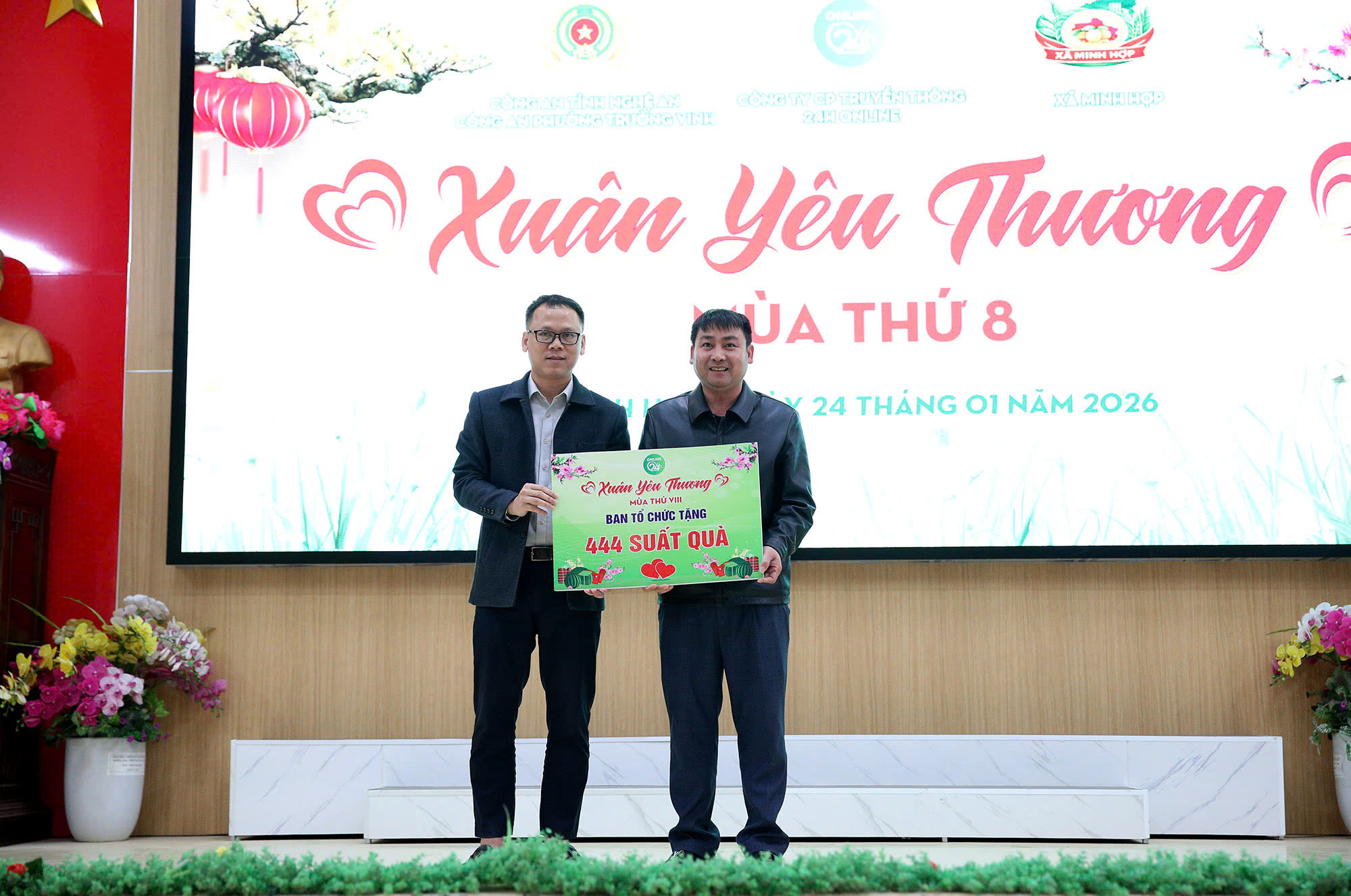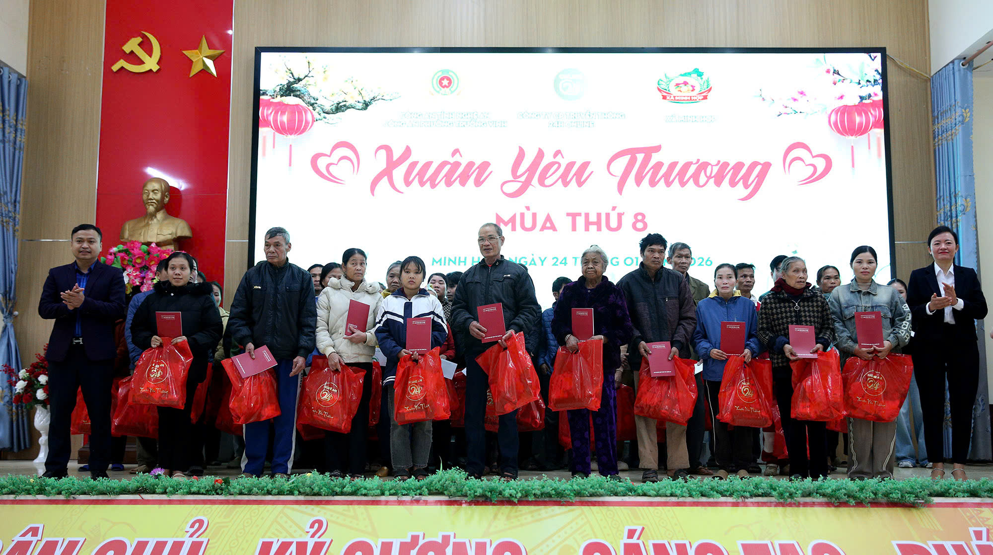Nhằm chia sẻ khó khăn, mang đến một cái Tết trọn vẹn và ấm áp hơn cho bà con xã Minh Hợp, chương trình "Xuân Yêu Thương" mùa thứ 8 đã triển khai chuỗi hoạt động ý nghĩa. Cụ thể, Ban tổ chức đã trao tặng 8 căn nhà tình nghĩa, 444 suất quà thiết yếu cùng một ngày hội khám chữa bệnh và cấp phát thuốc miễn phí, giúp bà con vơi đi gánh nặng mưu sinh ngày giáp Tết.