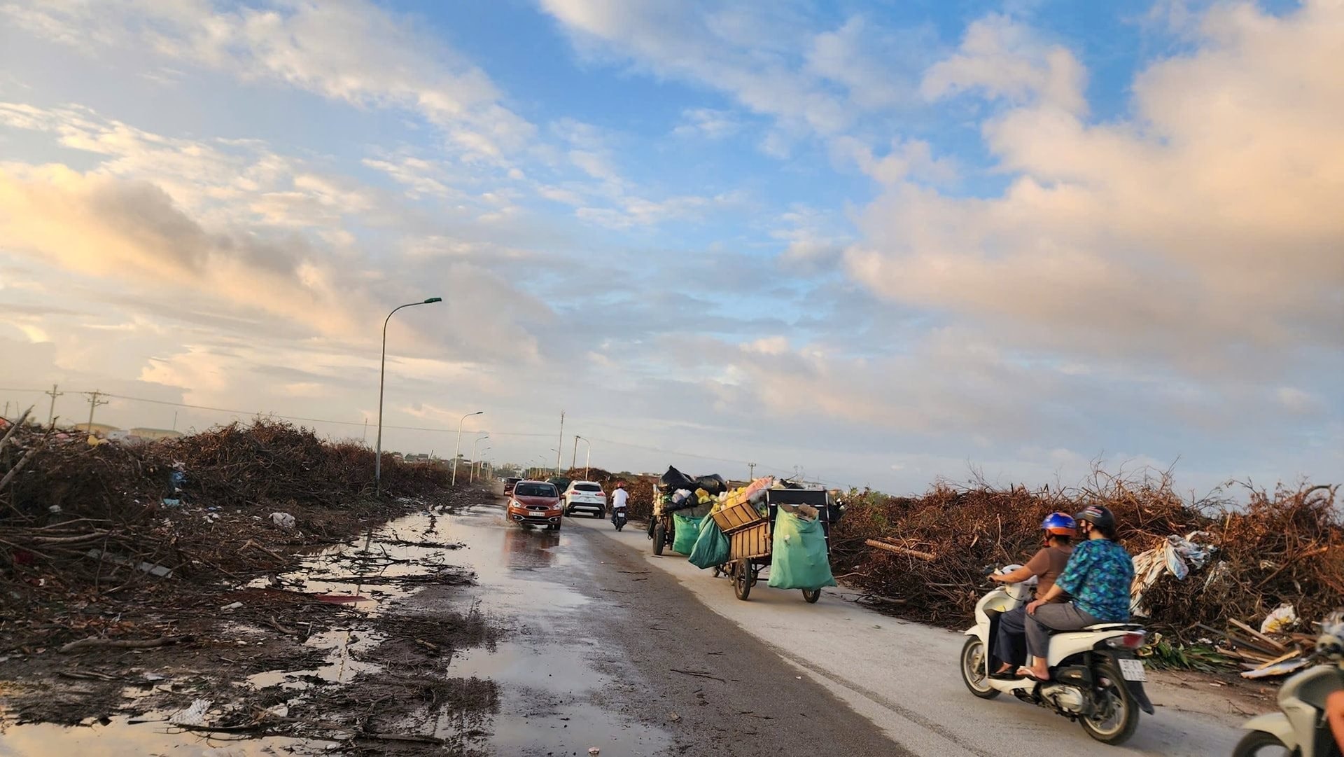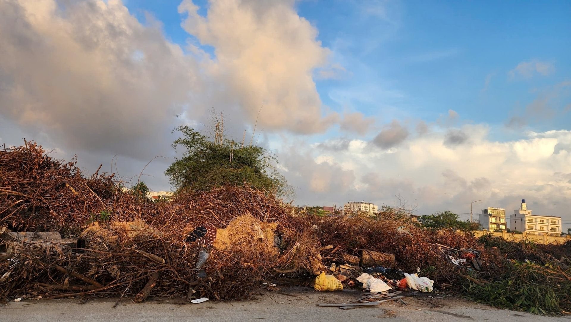 Kể từ khi cành, lá cây đổ gãy do mưa bão được tập kết tạm tại tuyến đường D3, phường Vinh Hưng (Nghệ An), khu vực này đã biến thành bãi rác lớn, ảnh hưởng đến sinh hoạt của người dân.