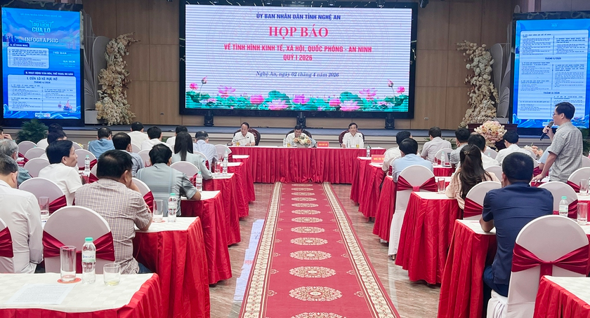 Chiều 2/4, Ủy ban nhân dân tỉnh Nghệ An tổ chức họp báo về Kinh tế, xã hội, Quốc phòng - An ninh Quý I năm 2026 cho biết, các ngành, các cấp tập trung triển khai thực hiện Kế hoạch năm 2026, xây dựng kịch bản tăng trưởng, đề ra các nhiệm vụ, giải pháp trọng tâm để chỉ đạo, điều hành.