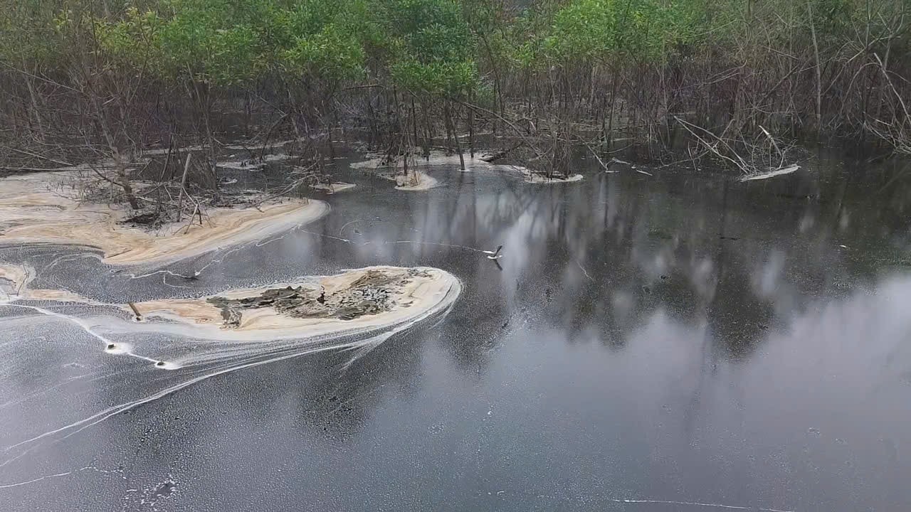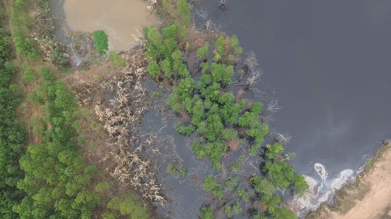 Nước đen kịt, bốc mùi hôi thối khiến cây cối bị chết khô, bọt nổi trắng xóa... |