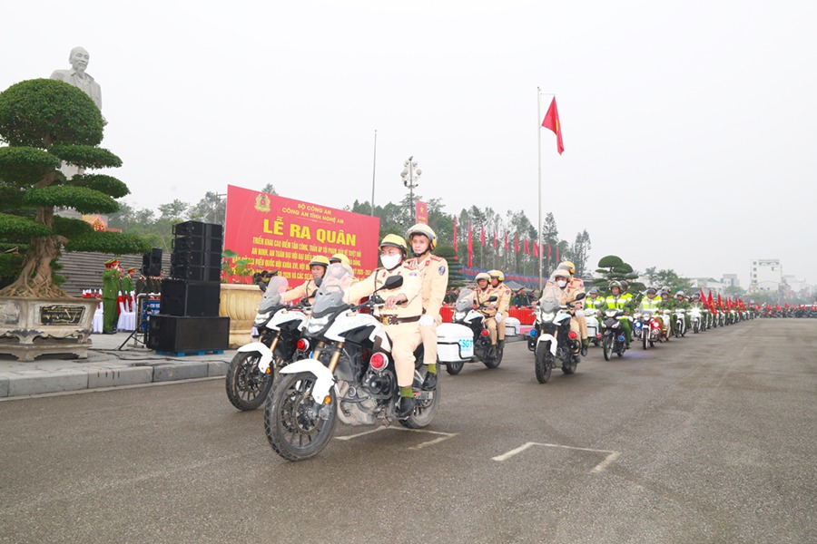 Sáng 12/12/2025, tại Quảng trường Hồ Chí Minh, Công an tỉnh Nghệ An trang trọng tổ chức Lễ ra quân tấn công, trấn áp tội phạm, bảo vệ tuyệt đối an ninh, an toàn Đại hội đại biểu toàn quốc lần thứ XIV của Đảng, bầu cử đại biểu Quốc hội khóa XVI, Hội đồng nhân dân các cấp nhiệm kỳ 2026 – 2031, Tết Nguyên đán Bính Ngọ 2026 và các sự kiện lớn của đất nước, các lễ hội đầu năm. Đợt cao điểm bắt đầu từ 08 giờ ngày 12/12/2025 đến ngày 16/3/2026.