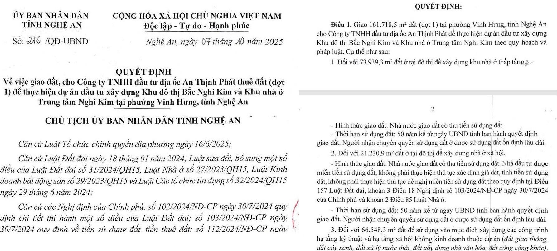 Theo quyết định mới nhất, UBND tỉnh Nghệ An đã giao 161.718,5 m² đất (đợt 1) tại phường Vinh Hưng cho Công ty TNHH Đầu tư Địa ốc An Thịnh Phát để triển khai dự án Khu đô thị Bắc Nghi Kim và Khu nhà ở Trung tâm Nghi Kim.