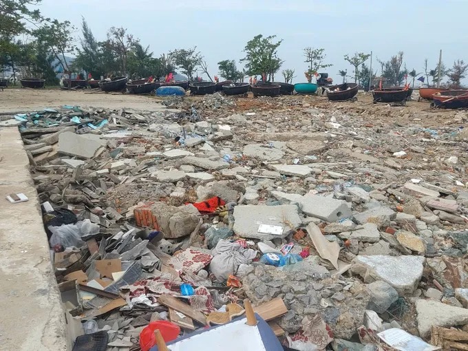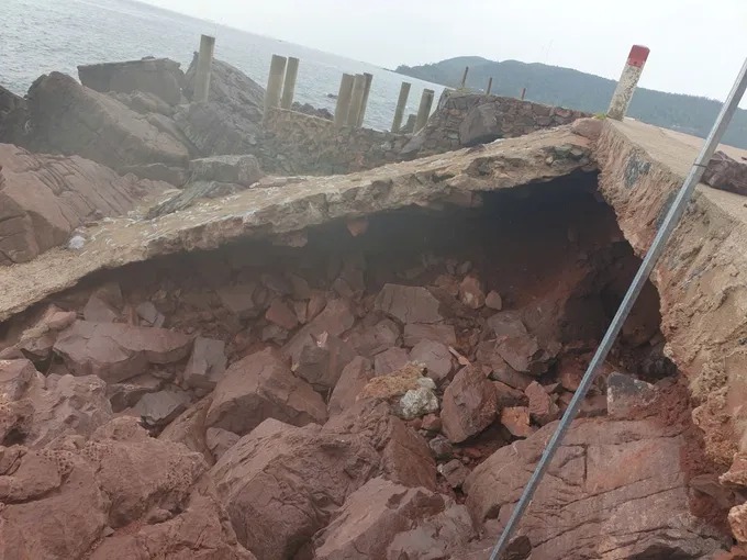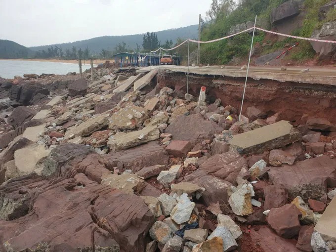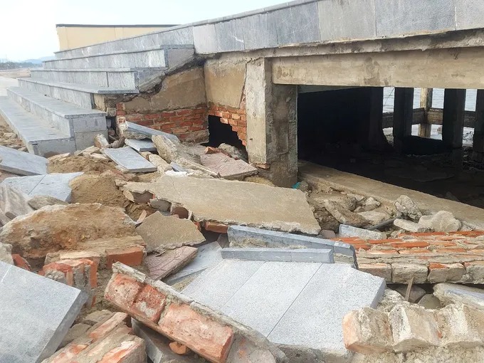 Kè biển tại xã Hải Lộc tan hoang sau bão |