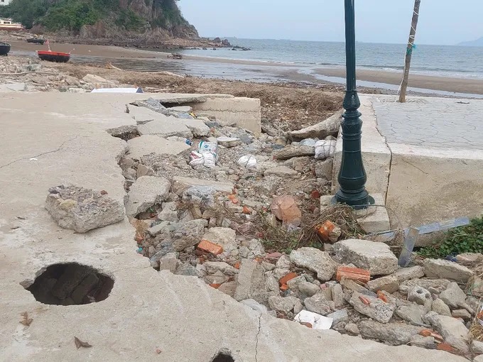 >>> Một số hình ảnh kè biển tại phường Cửa Lò và xã Hải Lộc hư hỏng sau bão:
