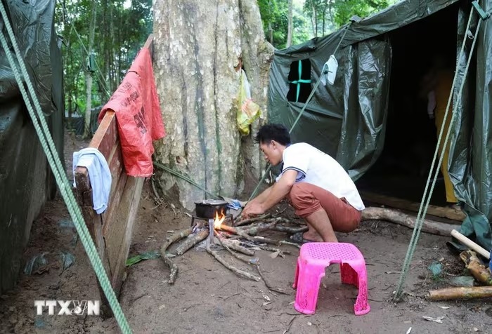 Cuộc sống sinh hoạt của người dân bản Phá Mựt (xã Nhôn Mai, tỉnh Nghệ An) tại khu nhà bạt còn nhiều khó khăn, bất cập. (Ảnh: Xuân Tiến/TTXVN) |