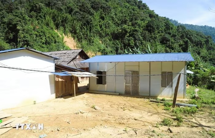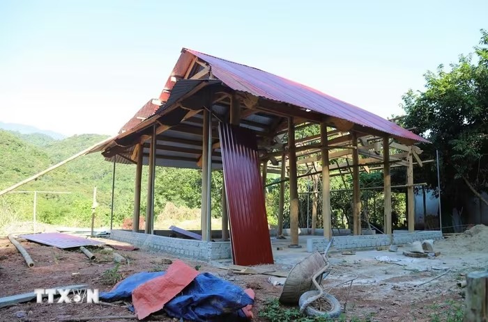 Những hộ dân có quỹ đất bằng dựng lại nhà ở để sớm tái thiết cuộc sống, sinh kế ổn định, lâu dài. (Ảnh: Xuân Tiến/TTXVN) |