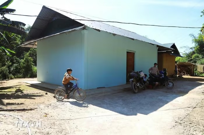 Khung cảnh bình yên tại những căn nhà mới được dựng lại sau lũ dữ trên địa bàn các xã biên giới phía Tây tỉnh Nghệ An. (Ảnh: Xuân Tiến/TTXVN) |