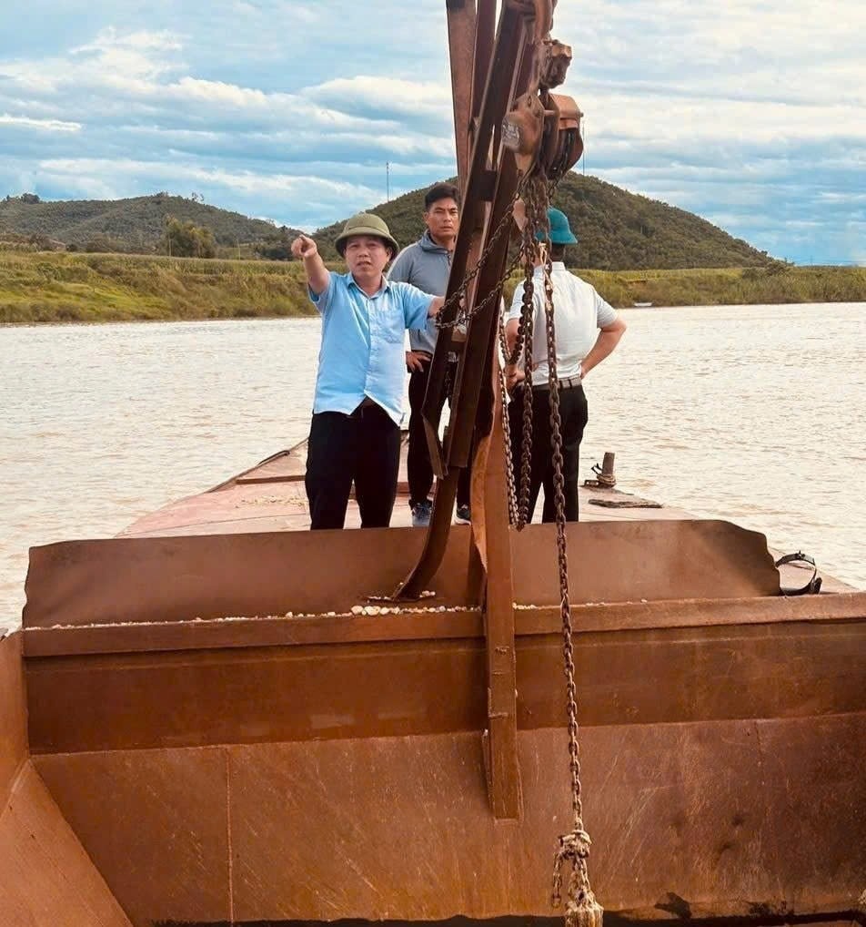 Đoàn kiểm tra liên ngành Nghệ An tiến hành kiểm tra hoạt động khai thác cát sỏi trên sông Lam. Ảnh: Công Lực |