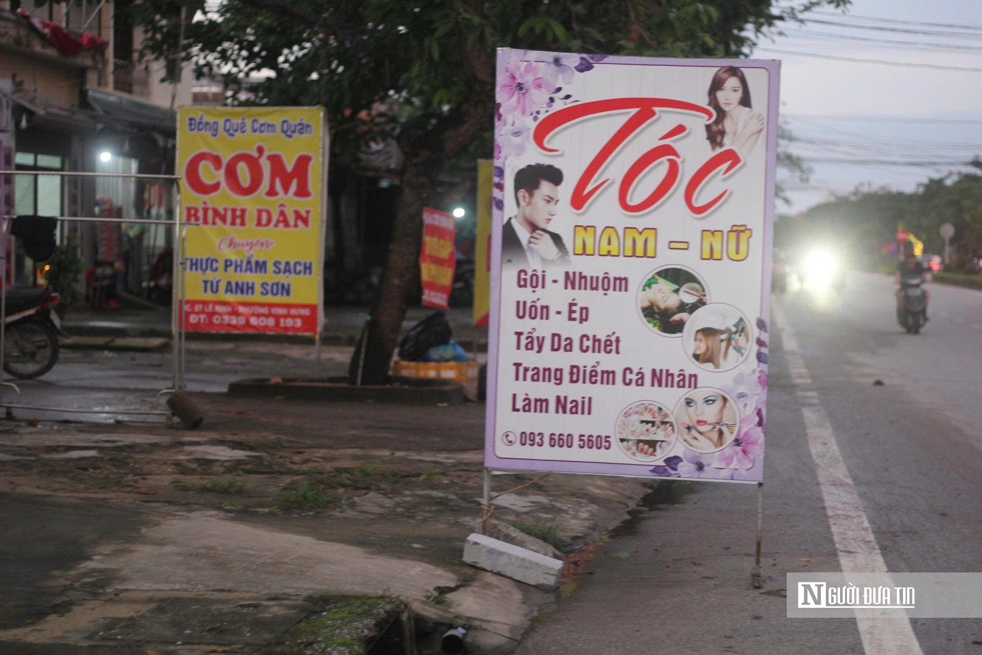 Đơn cử như trên tuyến đường Lê Ninh, phường Vinh Hưng, tình trạng đặt biển quảng cáo sai quy định đã diễn ra từ lâu. Dọc hai bên đường, hàng nghìn tấm biển quảng cáo của các hàng quán lớn nhỏ chen chúc nhau với đủ loại mặt hàng và dịch vụ.