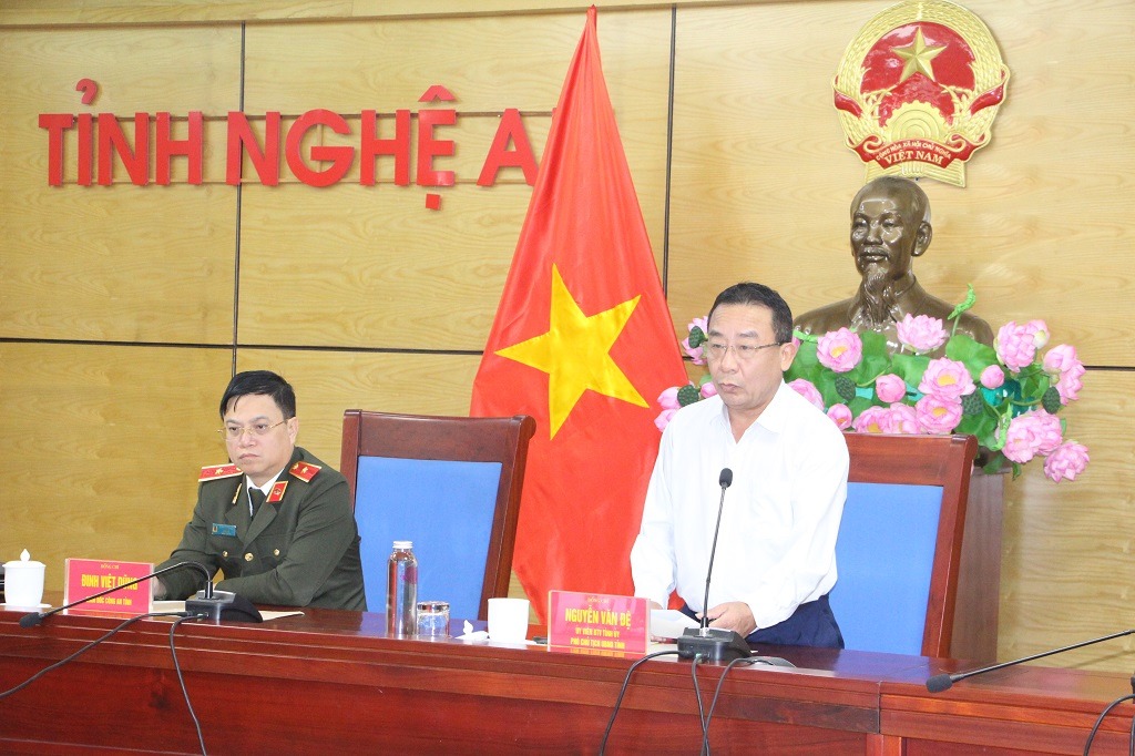 Tại điểm cầu Nghệ An, các đồng chí: Nguyễn Văn Đệ - Ủy viên Ban Thường vụ Tỉnh ủy, Phó Chủ tịch UBND tỉnh; Thiếu tướng Đinh Việt Dũng - Ủy viên Ban Thường vụ Tỉnh ủy, Giám đốc Công an tỉnh đồng chủ trì Hội nghị. Tham dự Hội nghị có lãnh đạo các sở, ban, ngành. Hội nghị được tổ chức trực tuyến đến điểm cầu UBND các xã, phường.