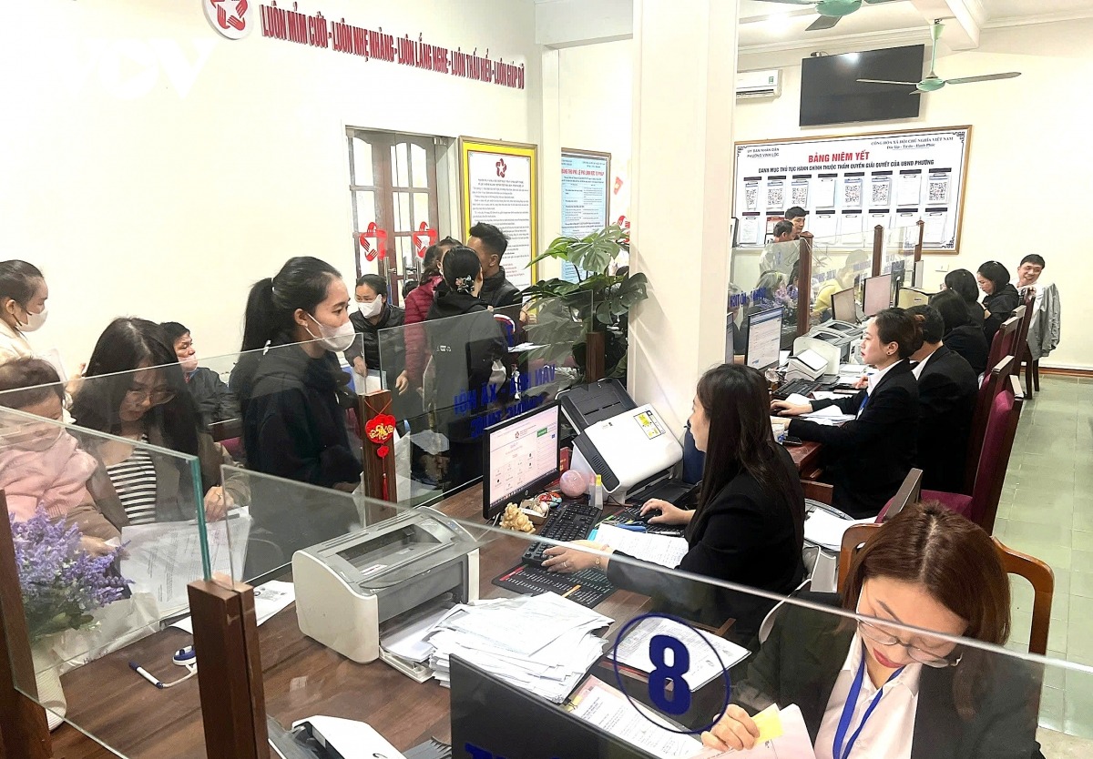 Khuôn viên trung tâm phục vụ hành chính công phường Vinh Lộc (Nghệ An) sáng 9/12. (Ảnh: Hải Chi). |