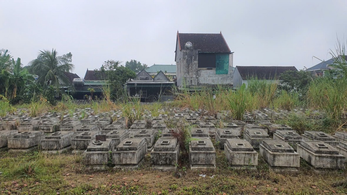 Sau khi khởi công một thời gian, dự án bất ngờ bị "đóng băng". Theo đó, đơn vị thi công đã triển khai được một số hạng mục như san nền, kè đá hộc, phần mộ xây mới. Đặc biệt, một dãy bờ rào kiên cố dài hàng trăm mét đã được xây dưng vây quanh khuôn viên khoảng 10 hộ dân với vài chục con người sinh sống.