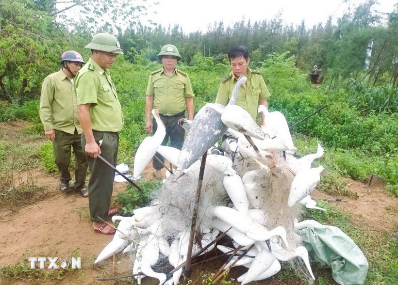 Từ ngày 22/10 đến nay, Hạt Kiểm lâm phối hợp với các lực lượng đã triển khai 3 đợt ra quân quyết liệt truy quét, phá dỡ và tiêu hủy, đốt hơn 12.440m lưới bẫy, 11kg nhựa dính, gần 1.300 cọc tre, gần 8.000 cò giả bằng xốp; thu giữ gần 60 âmly, loa và bình ắcquy; thả về môi trường tự nhiên gần 100 cá thể cò, vạc, diệc; đồng thời ra quyết định xử phạt hành chính gần 10 trường hợp có hành vi bẫy, bắt chim.