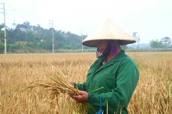 Bà Trần Thị Lan, trú xóm Hồng Sơn, xã Nghĩa Đồng cho biết, gia đình bà có 10 sào lúa nằm rải rác ở các cánh đồng của các xóm. Phần lớn ruộng lúa bị đổ ngã, ngập trong nước. Giờ lúa bị bùn đất bám vào hạt, chết thối rất nhiều. "Lúa gặt đem về cũng chỉ để cho gà vịt ăn, công máy cày, thuê người cấy, phân đạm, làm cỏ, chăm sóc giờ không có gì để thu hoạch. Thấy chán nản lắm, bỏ lúa ngoài đồng thì tiếc nuối công chăm, công làm", bà Lan buồn bã nói.