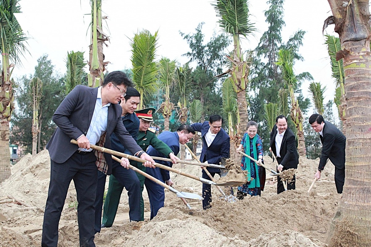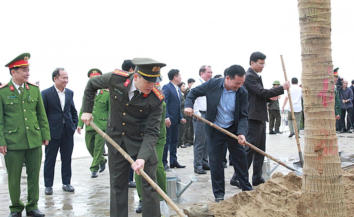 Lãnh đạo tỉnh Nghệ An tham gia trồng cây đầu xuân tại phường Cửa Lò. |