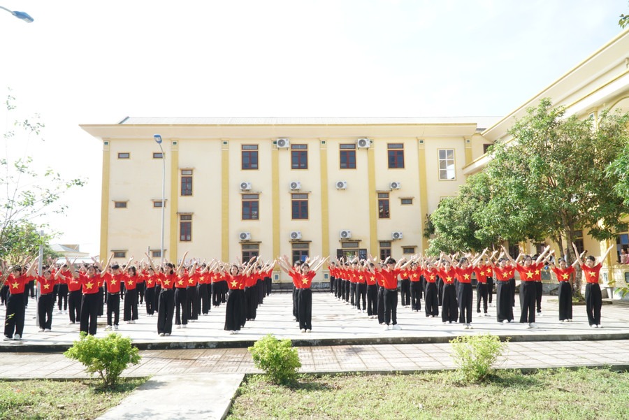 Màn đồng diễn của học sinh Trường Trung cấp Kinh tế - Kỹ thuật Bắc Nghệ An. Ảnh: Hồ Lài