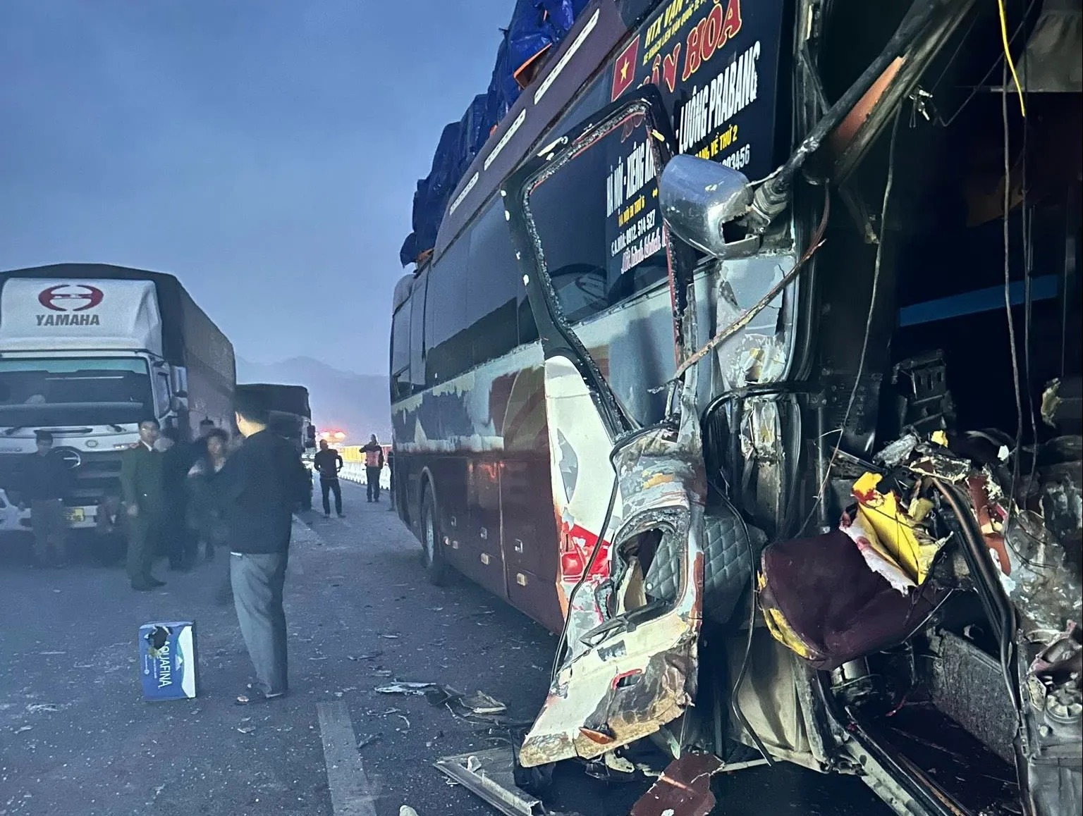Thời điểm xảy ra tai nạn có 5 xe ô tô chạy cùng chiều (bao gồm xe khách, xe tải) đã xảy ra tai nạn liên hoàn với nhau. Các xe lần lượt mang biển số gồm: 89C-326.9x, 29H-282.9x, UN-0369 (biển Lào), 29E-360.1x, 89H-029.0x.
