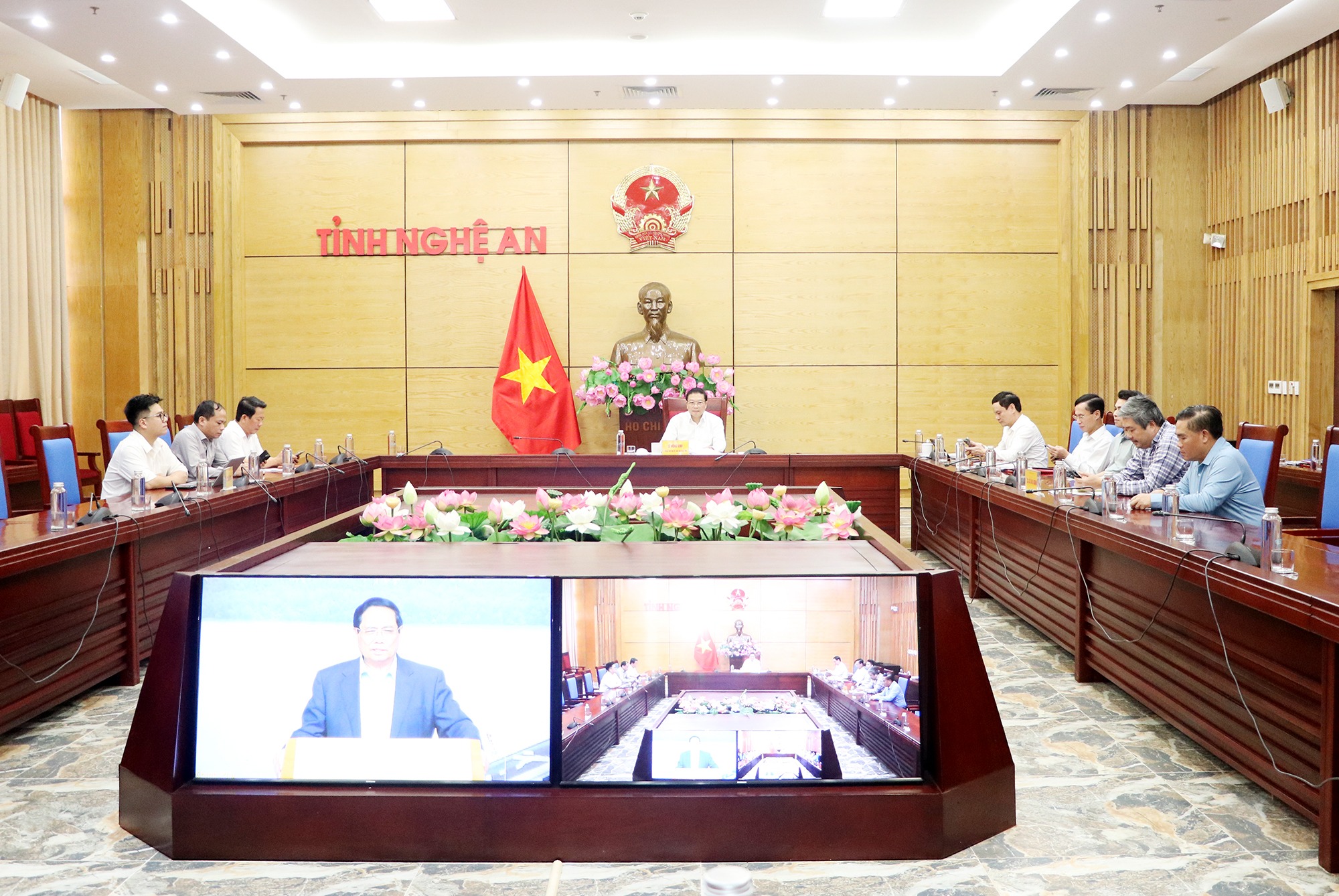 Chủ tịch UBND tỉnh Lê Hồng Vinh chủ trì tại điểm cầu Nghệ An |