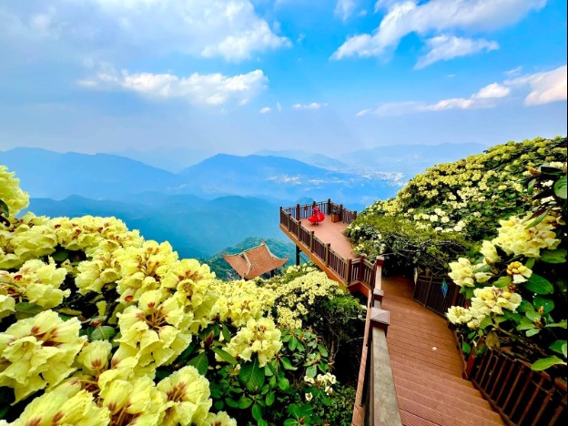 Sự kết hợp giữa vẻ đẹp hoang sơ, mãnh liệt của loài hoa biểu tượng của núi rừng Tây Bắc và không gian tâm linh tĩnh tại, linh thiêng tạo nên một trải nghiệm vô cùng khác biệt nơi đỉnh thiêng Fansipan.