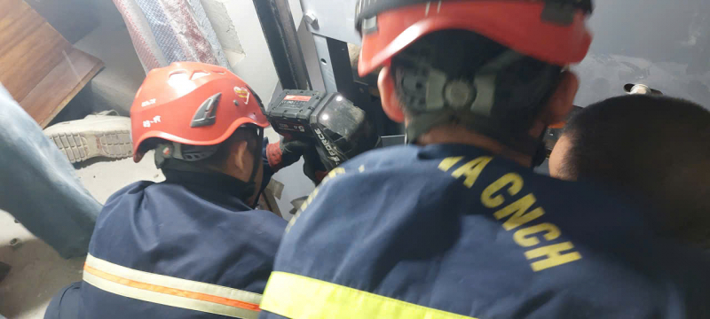 Tại hiện trường, tổ công tác của Phòng Cảnh sát PCCC và CNCH xác định, một nam giới bị mắc kẹt trong thang máy, tình trạng nguy hiểm đến tính mạng. CBCS Cảnh sát PCCC và CNCH đã nhanh chóng sử dụng thiết bị cứu hộ chuyên dụng, tiến hành chống đỡ cấu kiện và tiếp cận, đưa nạn nhân ra ngoài.