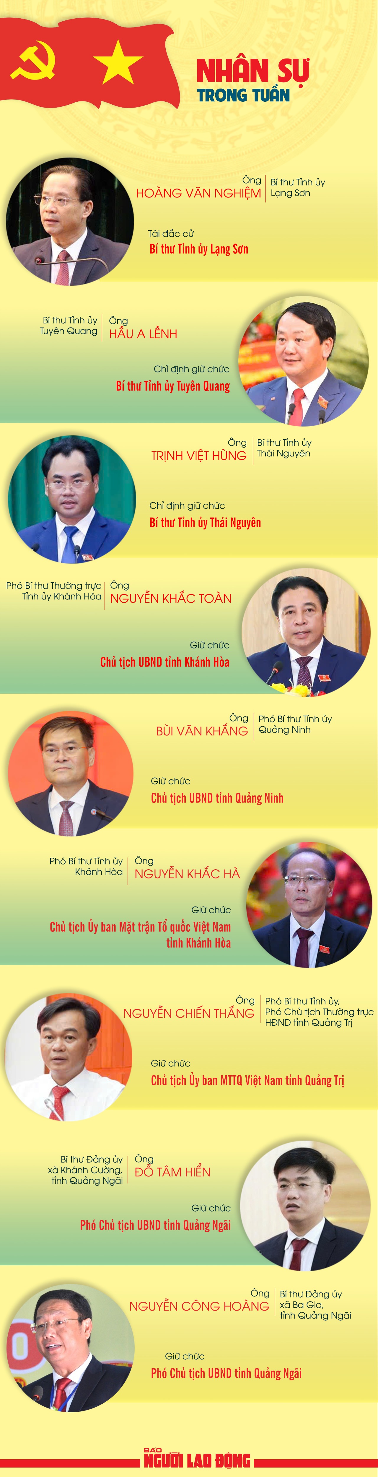 Trong tuần qua, nhiều cá nhân được bổ nhiệm, chỉ định giữ các chức vụ quan trọng tại các tỉnh Lạng Sơn, Thái Nguyên, Khánh Hòa, Quảng Ninh,…