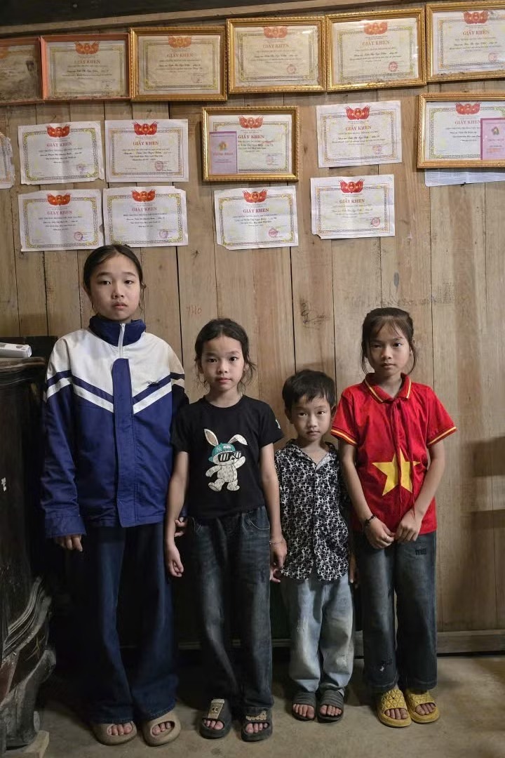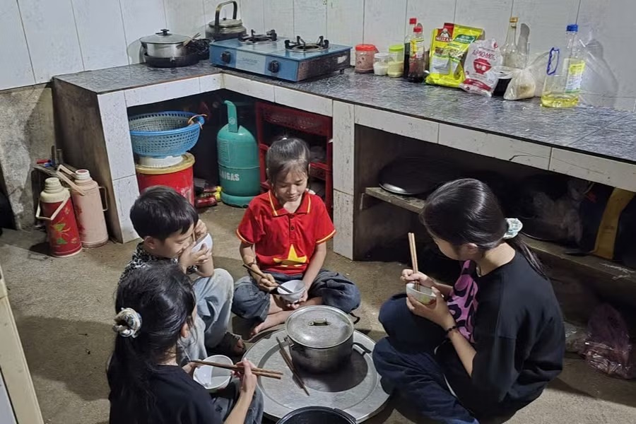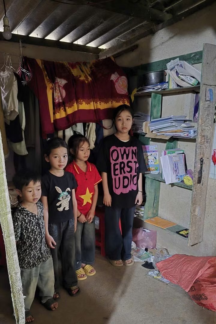 Khi mưa xuống, cả nhà lại tất tả lấy xô chậu, nồi niêu hứng nước từ mái dột, sách vở và quần áo ướt sũng. Có đêm mưa lớn, không còn chỗ khô để nằm, các em phải co ro ngồi nép vào một góc, chờ trời tạnh.