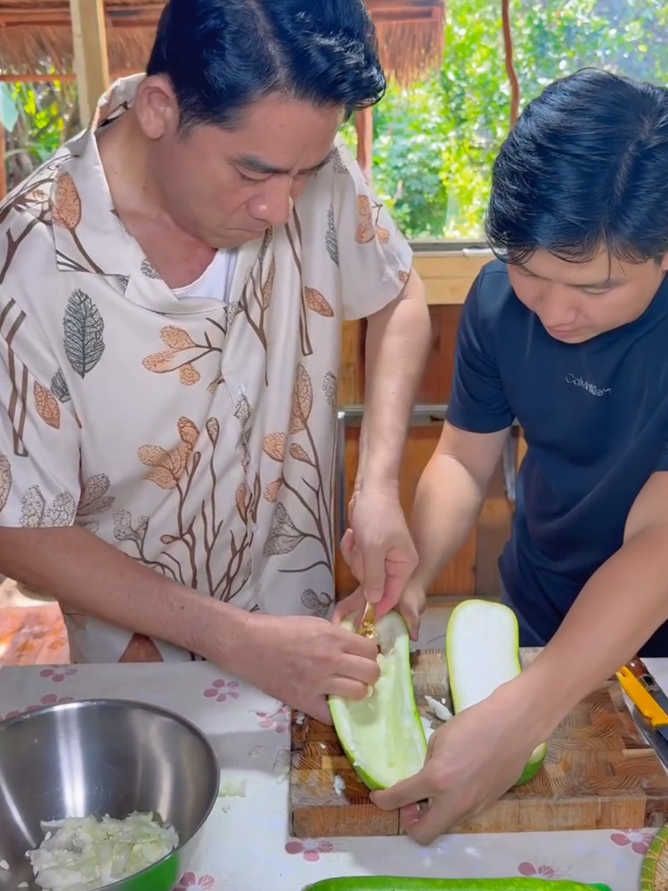 Đến món bắp bò hấp bầu, Hoài Linh chỉ nêm gia vị chỉ gồm nước tương, sả băm, ít bột ngọt. Anh cho biết dù nam diễn viên sụt cân sau thời gian dài điều trị bệnh, tinh thần anh thư thả và tiến triển rõ rệt sau mỗi ngày tập vật lý trị liệu.