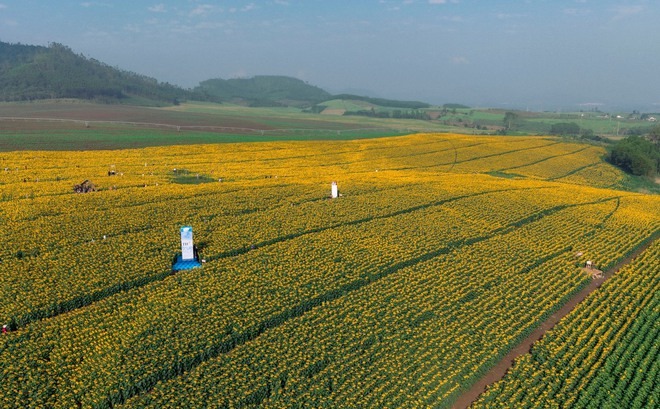 Góc nhìn từ trên cao: Nếu có flycam hoặc thuê dịch vụ flycam, hình ảnh toàn cảnh cánh đồng hoa sẽ ấn tượng và khác biệt rõ rệt so với ảnh chụp thông thường.