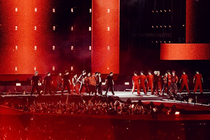 Tông màu đỏ xuất hiện rất nhiều trong đêm công diễn - Ảnh: BTC |