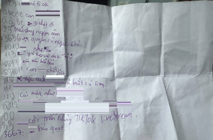 Nội dung một lá thư xúc phạm con chị Thanh. Ảnh: Phụ huynh cung cấp