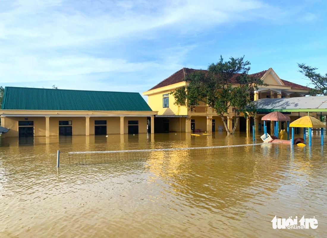 Trường mầm non Quang Vĩnh ngập sâu gần 2m trong lũ - Ảnh: LÊ MINH