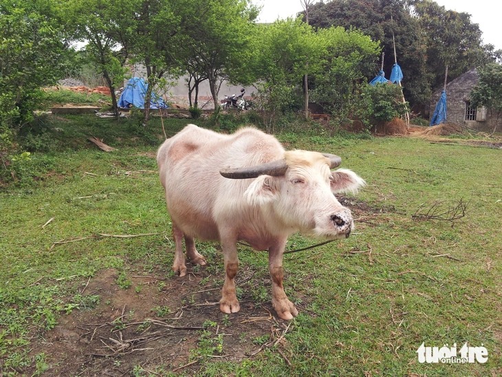 Con trâu bạc của gia đình anh Tùng xem như thú nuôi, chứ không đem bán hoặc làm thịt - Ảnh: ĐÀO TÙNG |