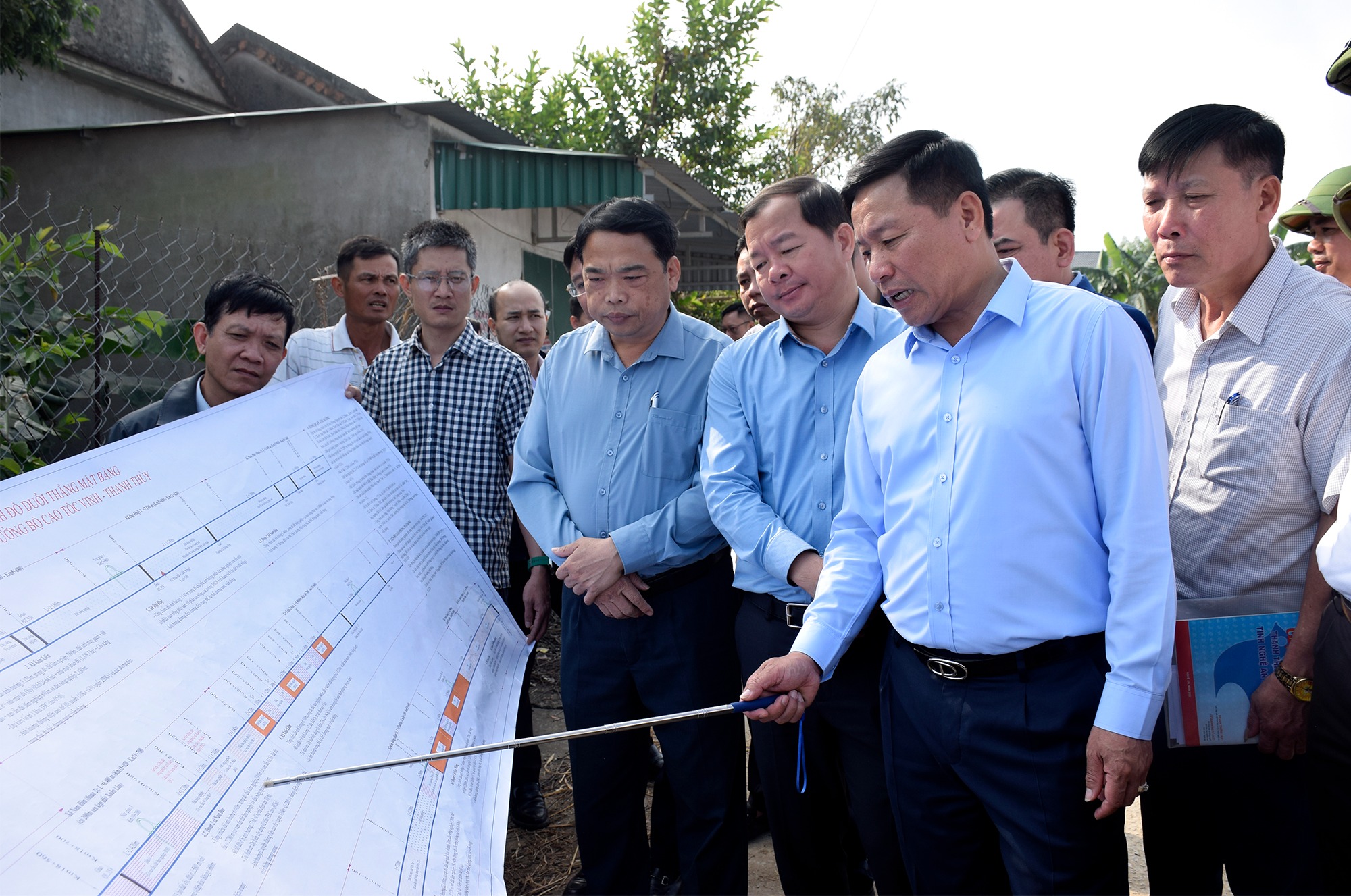Trực tiếp kiểm tra trên tuyến, lắng nghe ý kiến của các địa phương, Phó Chủ tịch UBND tỉnh Hoàng Phú Hiền ghi nhận và đánh giá cao nỗ lực của các ngành và các địa phương trong triển khai các nội dung liên quan thực hiện dự án đường bộ cao tốc Vinh – Thanh Thủy.