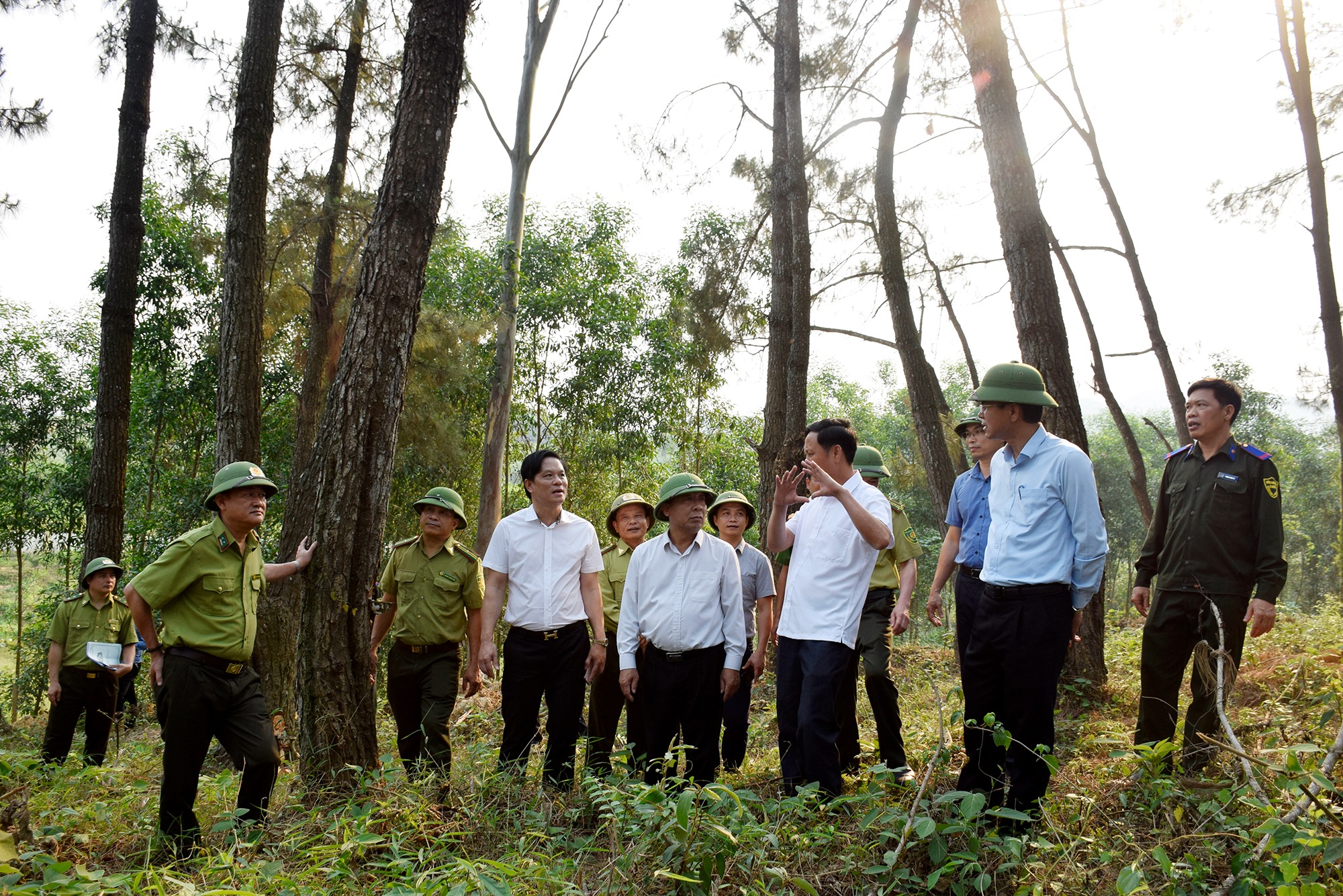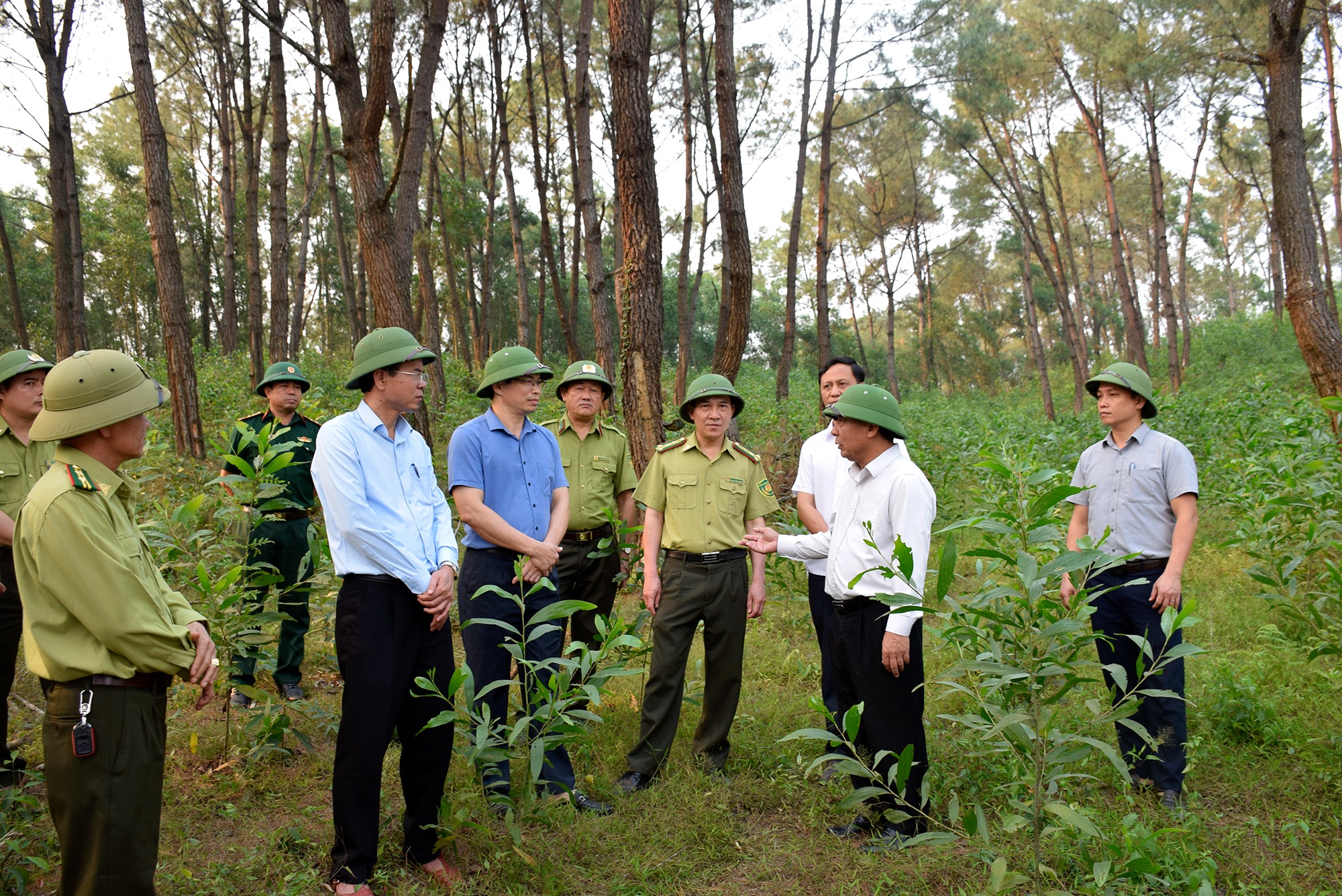Phó Chủ tịch UBND tỉnh Nguyễn Văn Đệ cùng đoàn công tác kiểm tra tại lô 21 khoảnh 5 tiểu khu 877A xã Bình Minh do Ban Quản lý rừng Bắc Nghệ An quản lý |