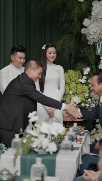 Bên cạnh đó, loạt khoảnh khắc ông Nguyễn Viết Hải bắt tay, ôm bố của Đỗ Hà trong lễ nạp tài cũng nói lên rất nhiều về tính cách, sự tinh tế của vị doanh nhân này. Không ít người bày tỏ, bố chồng Đỗ Hà có cách ứng xử vô cùng lịch sự, chu toàn trong từng khâu chuẩn bị và luôn thể hiện được sự trân trọng với gia đình nhà gái.