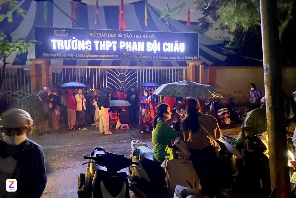 4h30 sáng 3/3, theo ghi nhận của Tri Thức - Znews, cổng trường THPT Phan Bội Châu (trường tư thục có trụ sở tại khu đô thị Văn Quán, phường Hà Đông, Hà Nội) đông nghịt phụ huynh xếp hàng chờ đăng ký suất học lớp 10 cho con. Khoảng 7h, danh sách tự phát do phụ huynh lập để lấy số thứ tự lên tới 300 người.