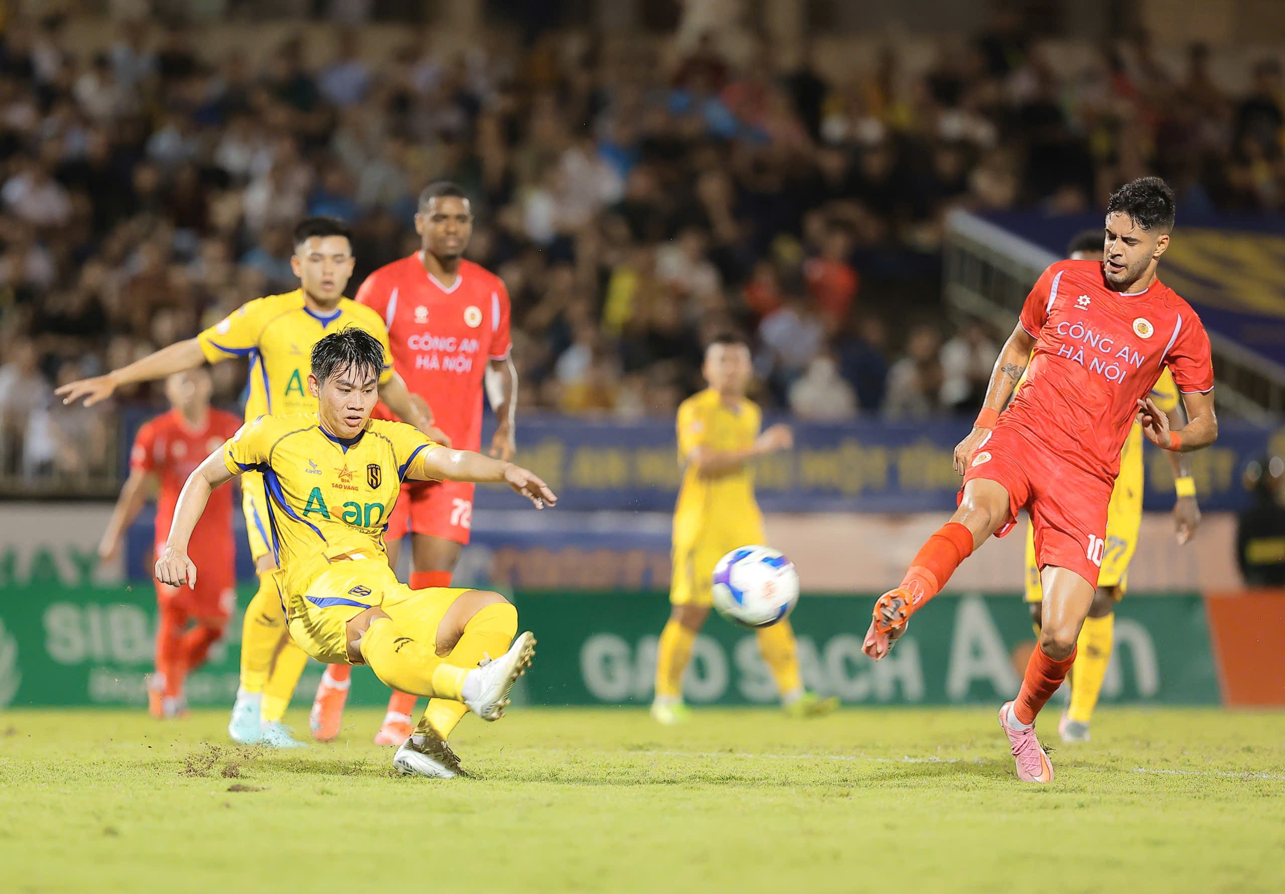 Đình Bắc cùng đội Công an Hà Nội tấn công áp đảo nhưng bị đội SLNA có dẫn bàn