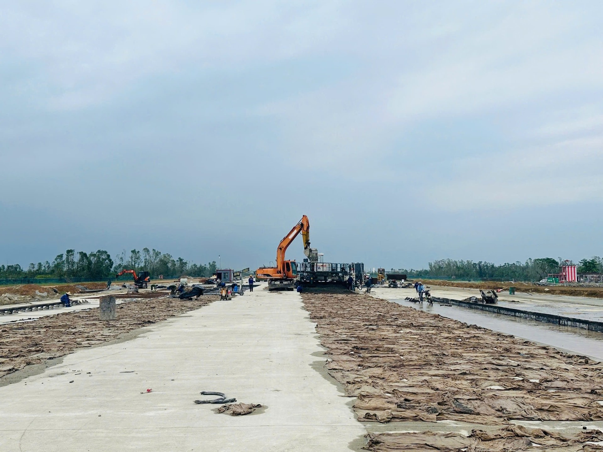 Phần công việc còn lại, có khoảng 120m nền đất yếu đã thi công xong phần gia cố cọc xi măng đất (xmd), tiếp tục hoàn thành rải cấp phối đá dăm và đổ bê tông lớp dưới cường độ M150 cũng như bê tông cốt thép lớp trên M350 trong tháng 10.