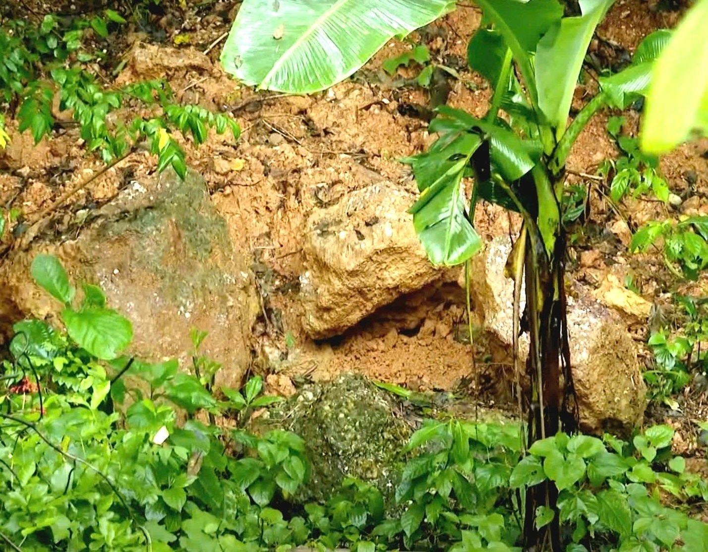 Người dân ở cạnh núi Thành cho biết, cách đây khoảng 2 năm có vết nứt nhỏ và sạt lở đất một lần rồi. Hiện nay, vết nứt mới kéo dài khoảng 50-60m và làm đất đá sạt lở xuống vườn nhà dân. Đất sạt xuống có những cục to 3-4 khối thì họ không thể di chuyển đi nơi khác được. Hiện tại, người dân ở đây luôn trong tình trạng lo sợ đất, đá rơi xuống nhà bất cứ lúc nào.
