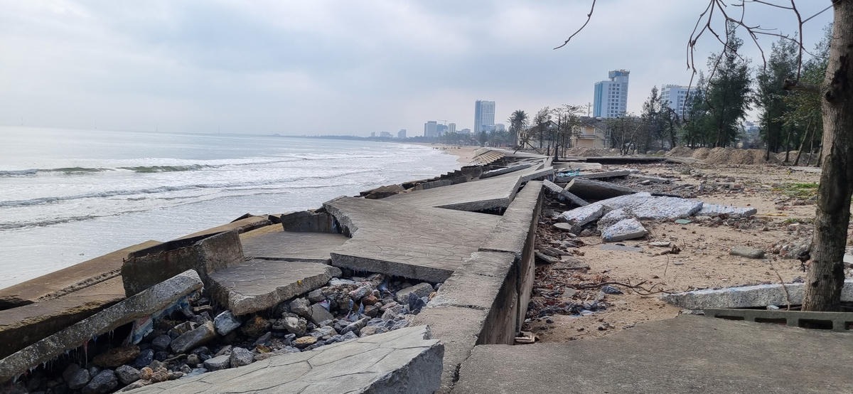 Cùng với đó, nhiều cột đèn chiếu sáng bị nghiêng, gãy đổ; hàng cây xanh ven biển bị bật gốc, nằm ngổn ngang sau mỗi đợt sóng lớn. Thực trạng này không chỉ làm mất mỹ quan đô thị biển mà còn ảnh hưởng trực tiếp đến an toàn, sinh hoạt của người dân địa phương, đồng thời đặt ra yêu cầu cấp thiết về việc sớm khắc phục, gia cố hạ tầng ven biển để kịp thời phục vụ mùa du lịch sắp tới.