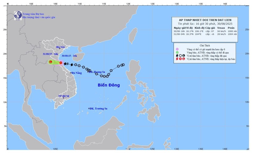 Chiều 30/8, bão số 6 (Nongfa) đã suy yếu thành áp thấp nhiệt đới và đi vào đất liền khu vực Hà Tĩnh-Quảng Trị. Do ảnh hưởng của áp thấp nhiệt đới, từ chiều tối 30/8 đến hết ngày 31/8, khu vực từ Thanh Hóa đến Hà Tĩnh, khu vực trung du, đồng bằng Bắc Bộ và Quảng Trị có mưa to đến rất to.