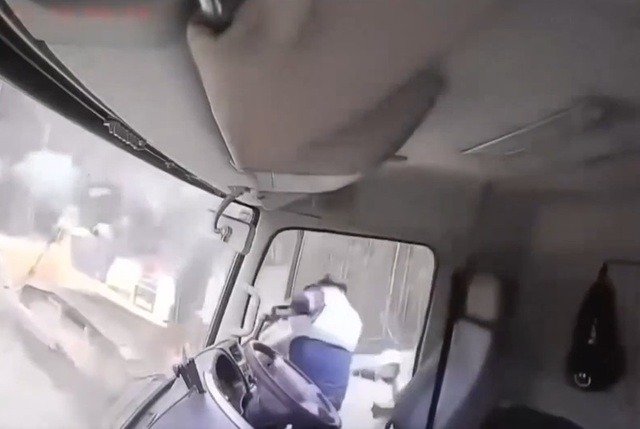 Đoạn clip ghi lại khoảnh khắc một tài xế nhảy ra khỏi xe tải để thoát thân khi phát hiện sạt lở đất ở Indonesia.