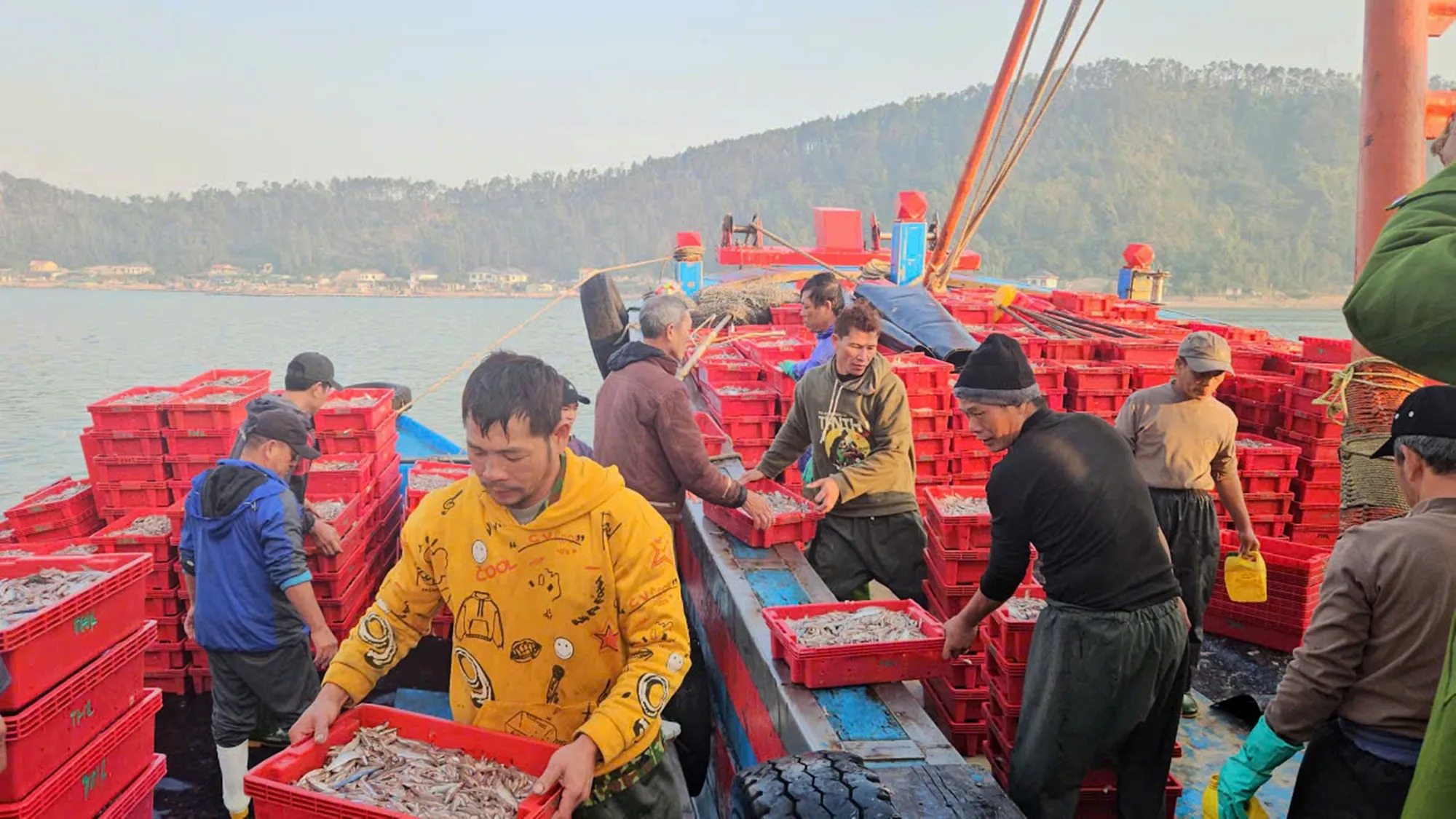 Trưa 9-1, ông Nguyễn Cảnh An, Phó Chủ tịch Hội Nông dân phường Cửa Lò (tỉnh Nghệ An), cho biết sáng cùng ngày, nhiều tàu cá của ngư dân địa phương sau chuyến biển khai thác trúng đậm cá cơm đã vào cập cảng cá Cửa Lò.
