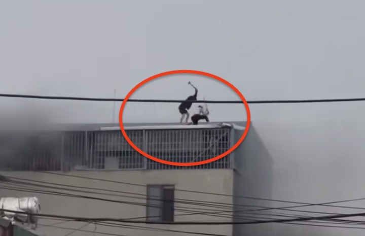 Phát hiện có nạn nhân mắc kẹt trong căn nhà 6 tầng bốc cháy, 2 người đàn ông kịp thời dùng búa phá mái tôn, cứu cả gia đình thoát nạn.