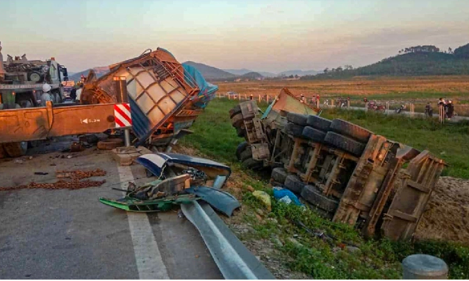 Xe tải đầu kéo và xe khách giường nằm tông vào nhau trên cao tốc Nghi Sơn - Diễn Châu, kéo theo sự va chạm với chiếc ô tô con phía sau; cả 3 xe đều hỏng nặng.