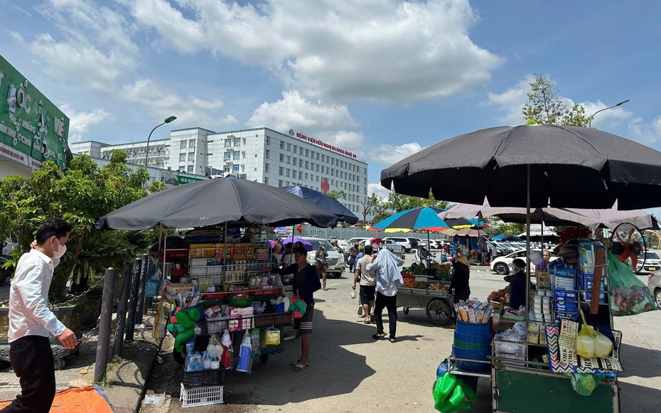 Cổng bệnh viện lớn nhất Nghệ An biến thành "chợ cóc" bất chấp biển cấm