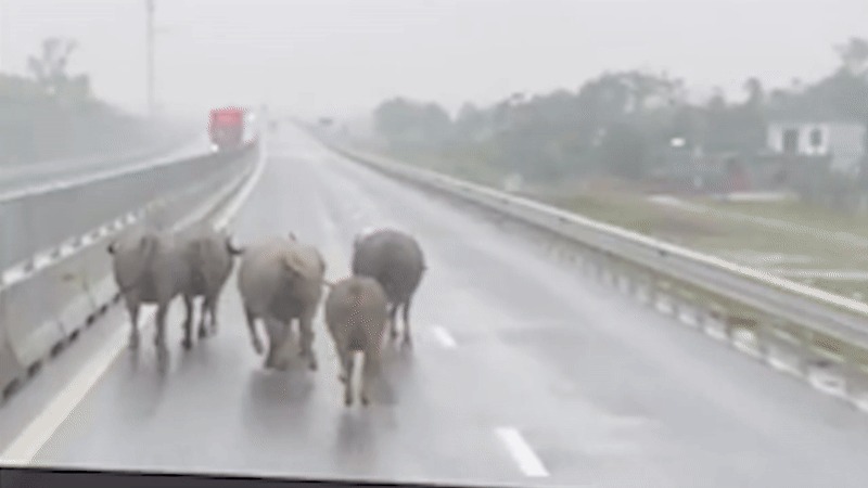 Đàn trâu chạy trên cao tốc Hàm Nghi - Vũng Áng