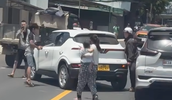 Mâu thuẫn gia đình, một thanh niên lái ô tô ép taxi đang chở vợ dừng giữa quốc lộ 20 phường B'Lao (Lâm Đồng) rồi dùng gậy sắt đập phá xe taxi.