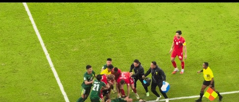 Sau pha tranh bóng, cầu thủ hai đội đã lao vào đánh nhau ngay trên sân khiến trọng tài phải rút ra 2 chiếc thẻ đỏ.