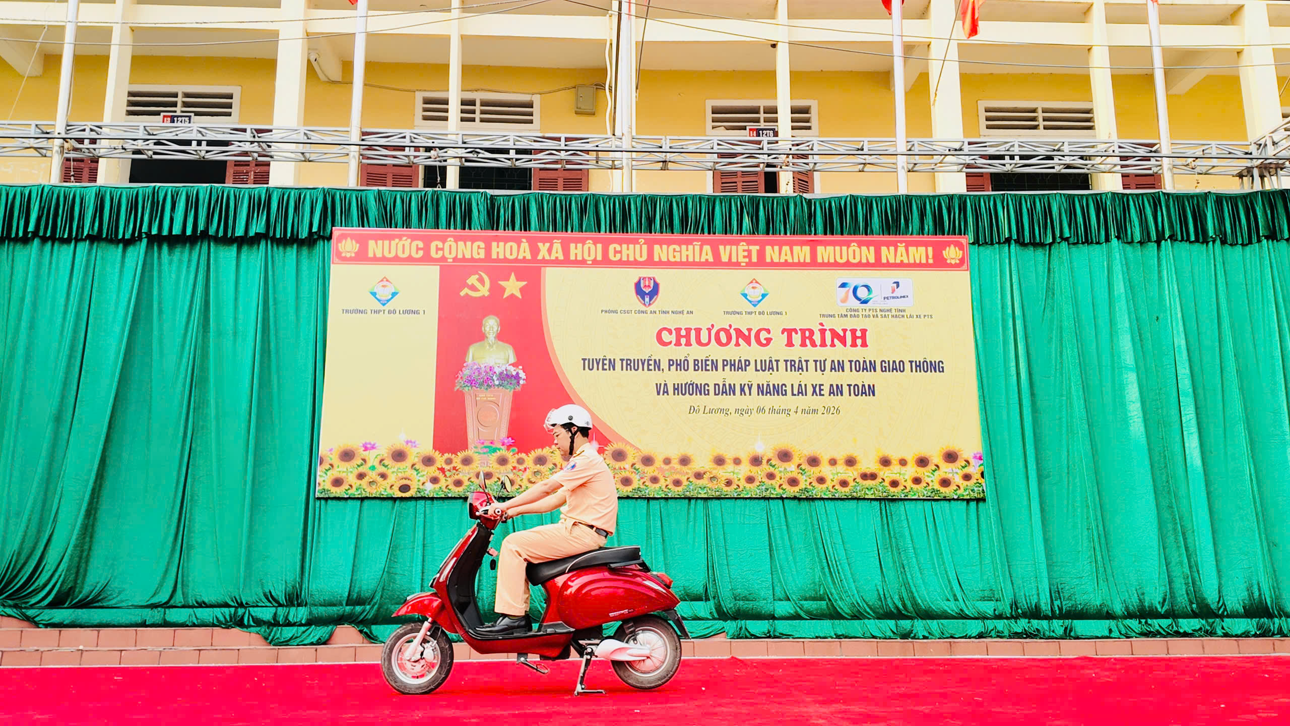 Phòng Cảnh sát giao thông, Công an tỉnh Nghệ An phối hợp tổ chức tuyên truyền pháp luật giao thông, hướng dẫn kỹ năng lái xe an toàn cho học sinh Trường THPT Đô Lương 1, góp phần lan tỏa văn hóa giao thông học đường.